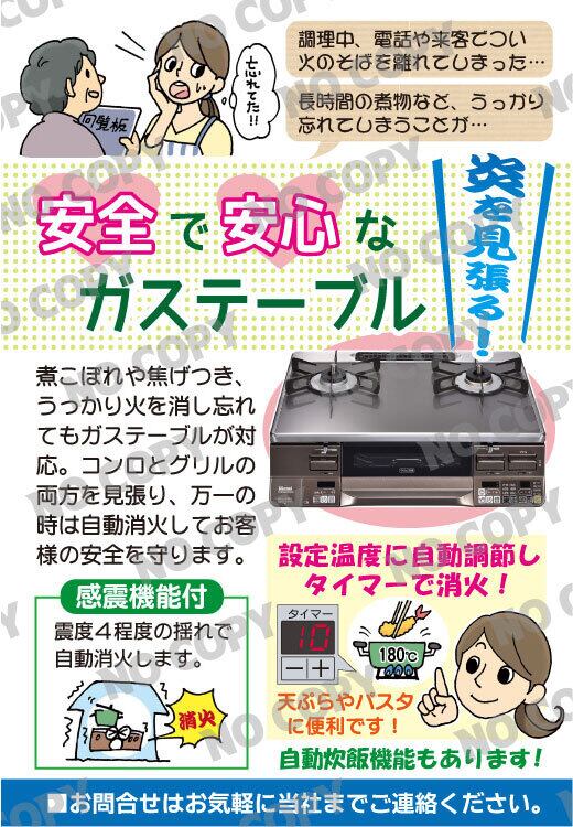 そんな“うっかり”が火事の原因になることも少なくありません。「ガステーブル」は、万が一の時も自動で火を消してくれる心強い味方。ガステーブルの安全性を配信すれば、火災予防の意識向上とガス機器への信頼性アップを同時に実現できます。