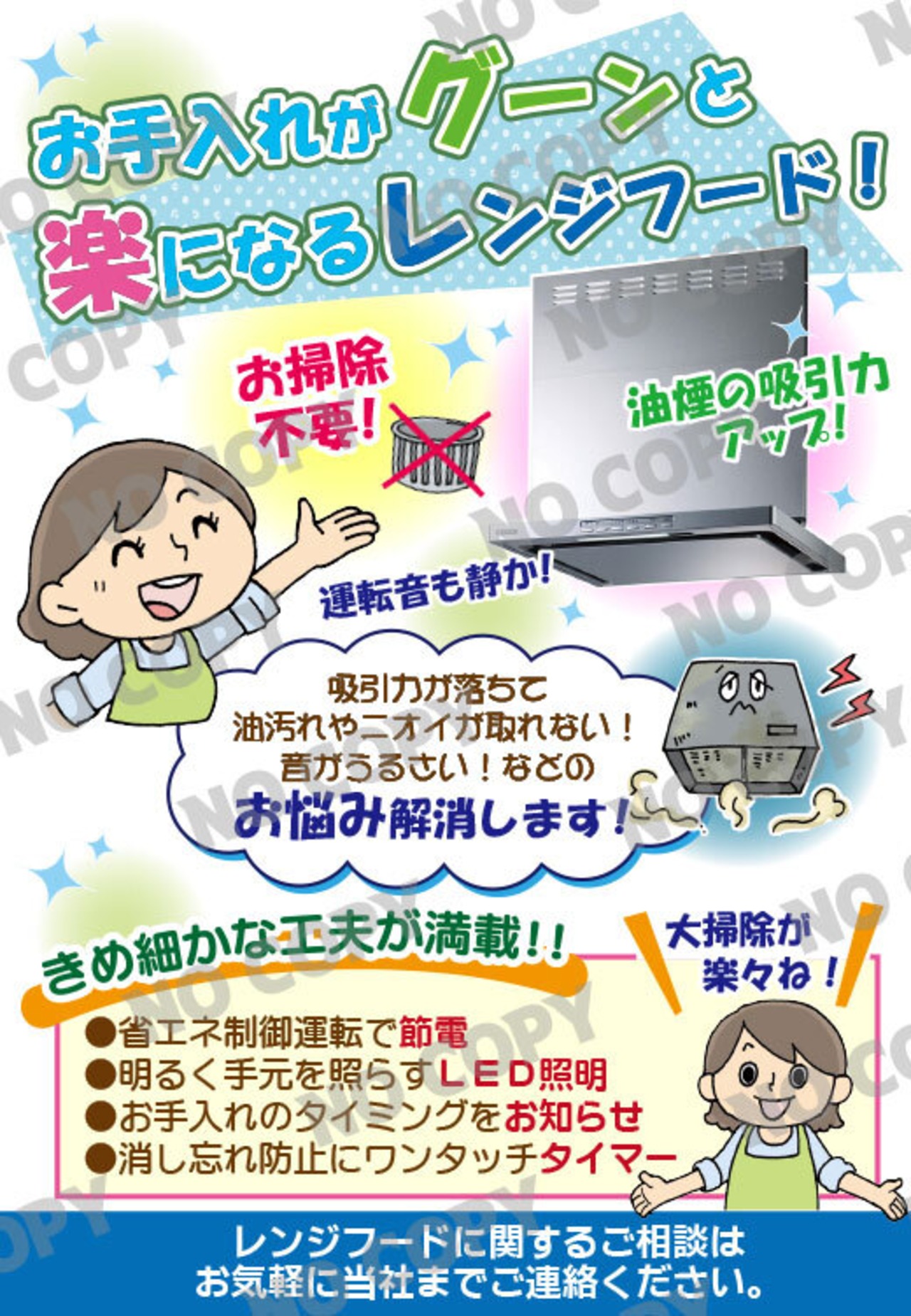「ベタベタ油汚れが落ちない」「ファンの音がうるさい」など、従来のレンジフードの悩みを一気に解消するのが、この最新型レンジフード。LPガス事業者がこの情報を配信することで、キッチンリフォームやビルトイン機器の提案にもつながり、ガス機器全体の販売機会を広げることが可能です。