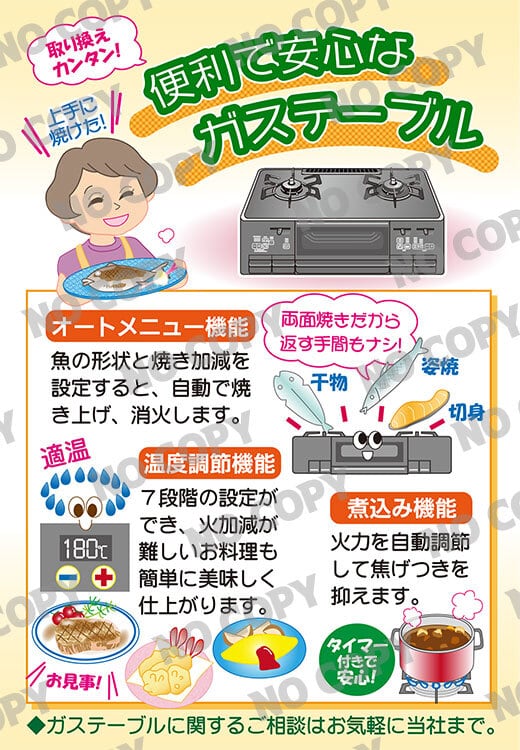 料理中の「火加減が難しい」「焦げつかせてしまった」そんな悩みを解消してくれるのが、便利で安心な最新ガステーブルです。LPガス事業者がこの商品をLINEで紹介することで、買い替えニーズの掘り起こしやガス機器の利用促進につながり、顧客満足度アップと販売機会の拡大が期待できます。