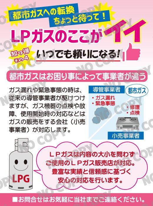 都市ガスではトラブルの内容によって対応業者が異なるのに対し、LPガスならすべてを一括で対応。今回のコンテンツでは、「何かあったときにすぐ頼れるパートナーがいる」ことの安心感を訴求します。