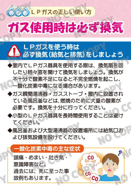室内でLPガス器具を使用する際、見落とされがちなのが「換気の徹底」です。換気不足は不完全燃焼を招き、一酸化炭素中毒という命に関わる事故につながる恐れがあります。このコンテンツは、ガス使用時の換気の重要性をお客様にしっかり伝えることで、LPガス事業者としての安全意識の高さを示し、信頼構築と事故防止の両立を実現します。