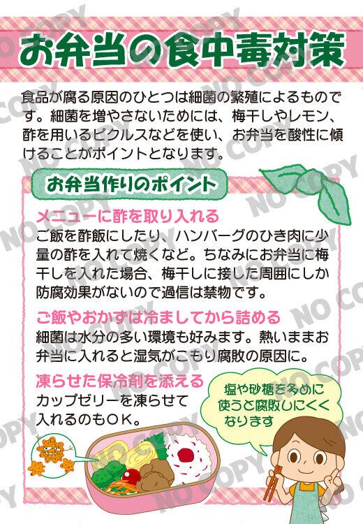 本コンテンツは、細菌の繁殖を抑えるお弁当づくりの基本をやさしく伝える情報記事です。酢や梅干し、レモンなどを活用してお弁当を酸性に近づける工夫など、家庭ですぐ実践できる内容がまとまっています。