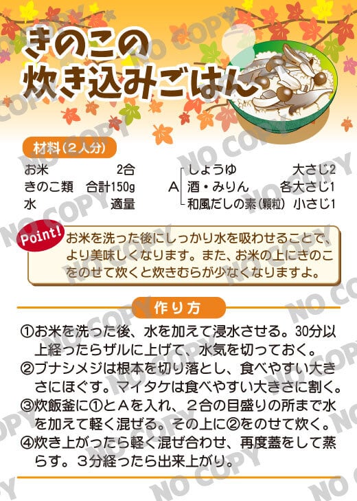 ● 米の上にきのこをのせて炊くことで、炊きむらを防止