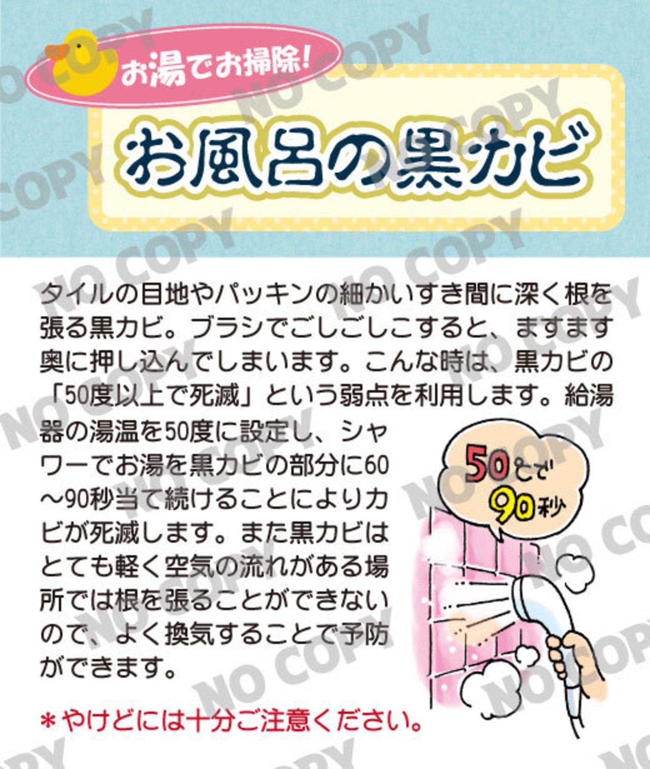 このコンテンツでは、洗剤不要・ブラシ不要で、シャワーのお湯だけを使った黒カビ撃退法を紹介。LPガス事業者がこの情報を配信することで、「ガスでお風呂を沸かす」ことの価値が衛生・快適面でも再認識され、ガス使用量の促進とサービス価値の向上が期待できます。