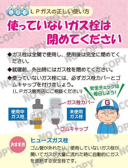 ・未使用のガス栓にはカバーとゴムキャップの装着を推奨