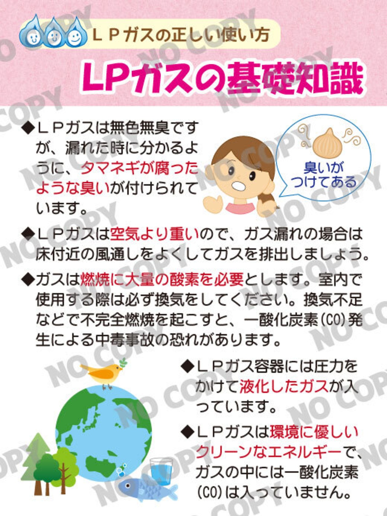 ・LPガスにはタマネギが腐ったような臭いがつけられており、漏れをすぐに察知可能