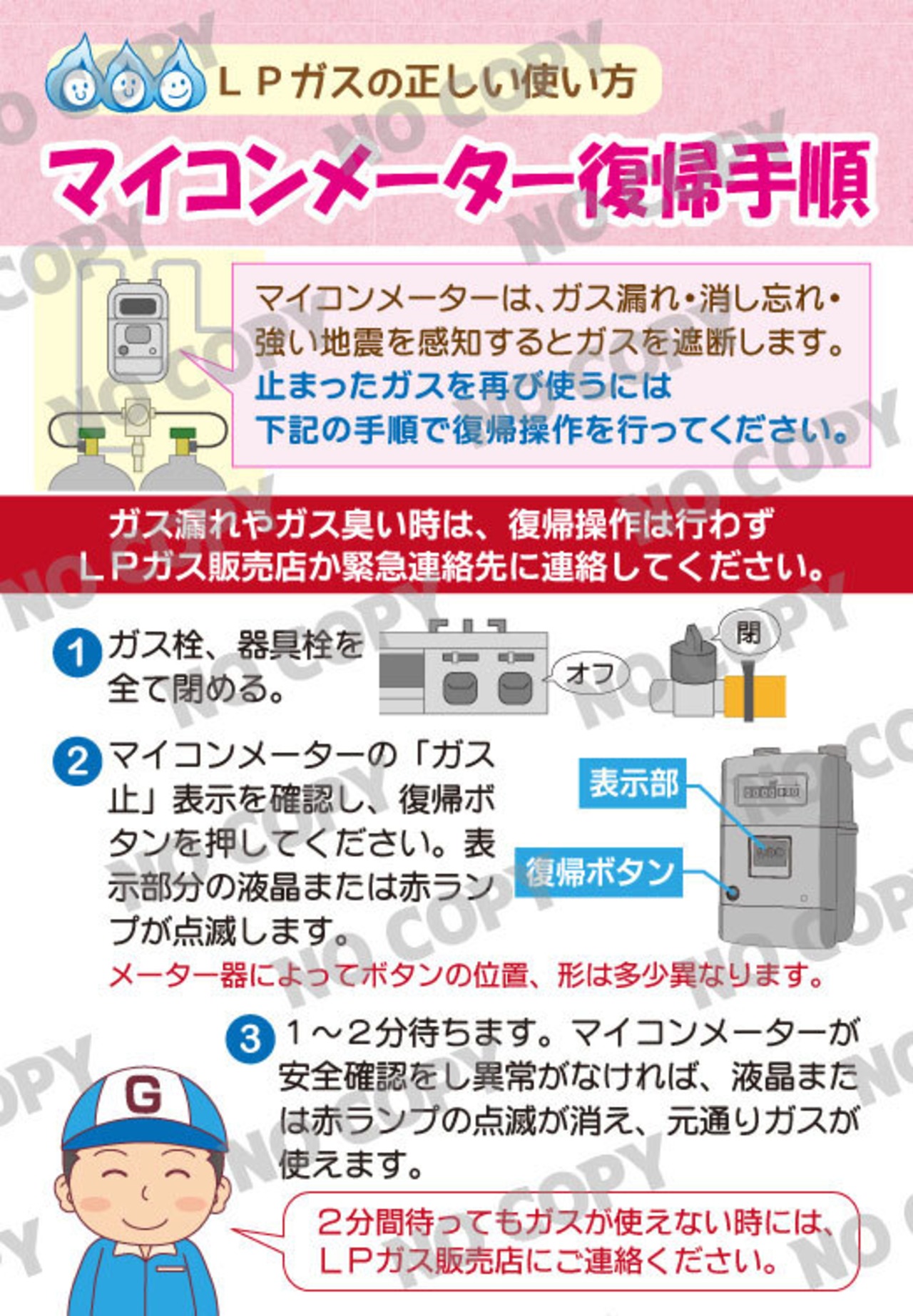・メーターの「ガス止」表示を確認し、復帰ボタンを押す