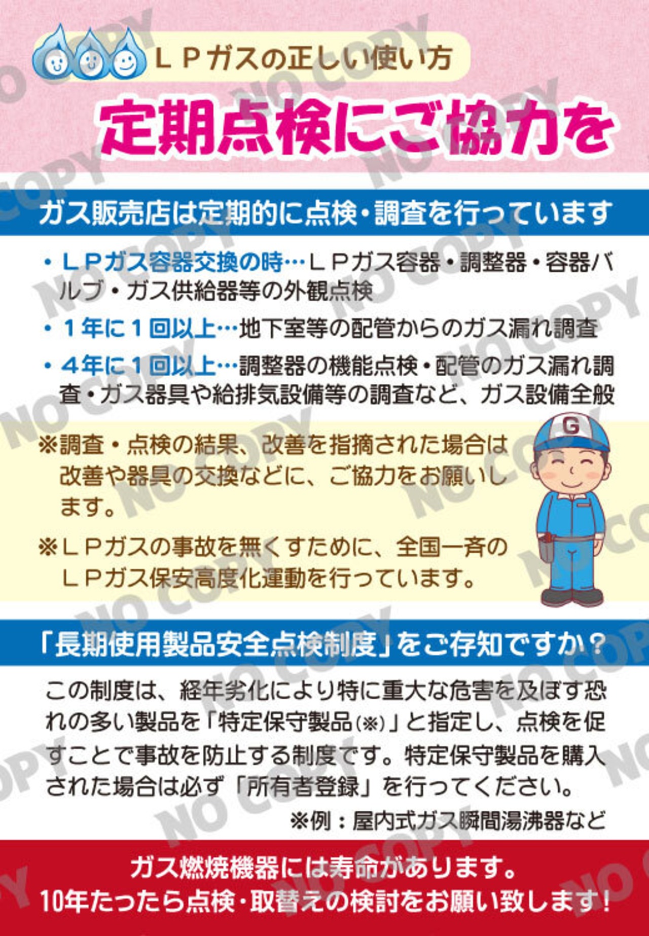 さらに、経年劣化が進んだ機器の事故を防ぐ「長期使用製品安全点検制度」にも触れ、10年以上使用のガス機器は点検・買い替えを提案。これにより、機器更新のきっかけづくりにもなり、販売促進や信頼強化に直結します。
