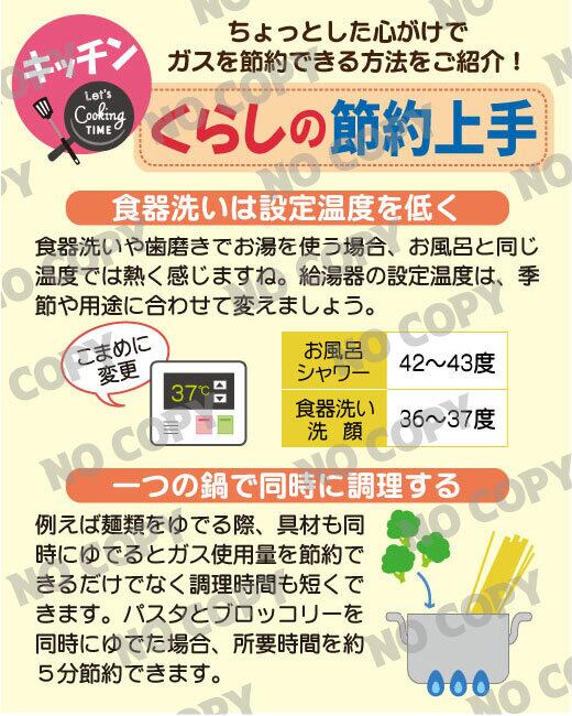 ・給湯器の温度は使用目的に合わせてこまめに設定変更(例:食器洗い時は36~37度)